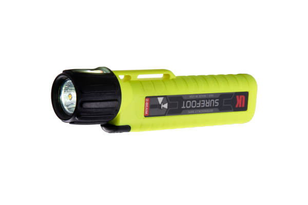De Surefoot van het merk UK is een Ex ATEX Zone 0/20 handlamp met twee lichtbeelden.