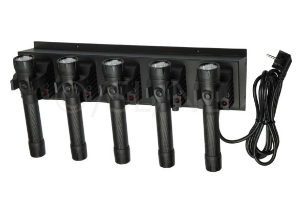 Laadstation 230V met vijf Streamlight PolyStinger DS LED zaklampen biedt de professional uitkomst. Altijd snel en veilig zaklampen opladen in de werkruimte op 230V. Compleet geleverd met lampen en laadkabel.