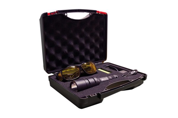 Deze zeer krachtige UV LED zaklamp is speciaal ontworpen voor (forensische) opsporing. De golflengte van 365 nm maakt de detectie van verdachte voorwerpen mogelijk met een enorm ver bereik van 100 meter zonder donkere vlekken. De beste lamp in zijn categorie. De lamp wordt compleet geleverd met: bescherm koffer, UV-beschermbril, micro-USB kabel, USB netadapter en Li-Ion batterij. De UV365 is een compacte, zware UV-zaklamp die water- en schokbestendig is en kent een hoge bescherming tegen water en stof.